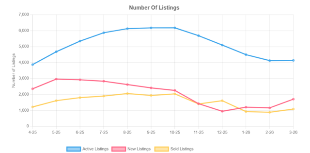 - New listings are beginning to rise, signaling the start of a more competitive spring market.